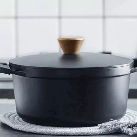 我很喜欢买锅,家里的锅大大小小也很多。这口北欧铸汤锅的样子很讨喜,磨砂黑看起来非常高级,配个木头的锅盖把手,又有点温柔的样子,可能因为这种克制又细节的设计,所以要以北欧为前缀吧。