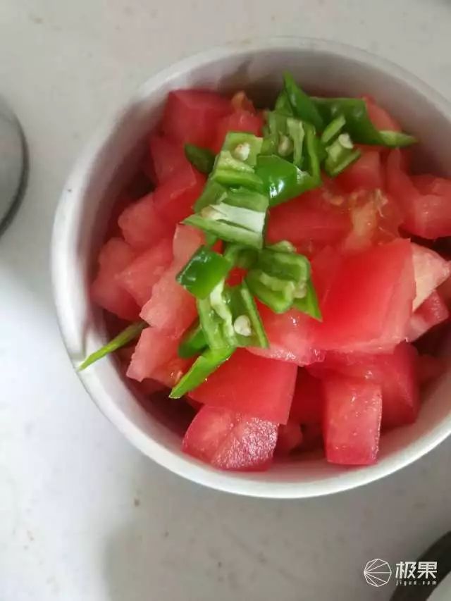 洋葱×1,番茄×1,绿辣椒×1,分别剁成小丁