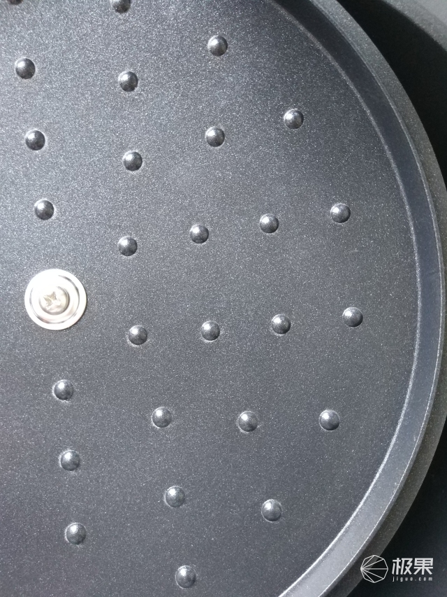 锅盖的底部是波点的,在商品详情里没有写出来,不过我不太清楚这样的用意。或许是炖菜过程中,让锅盖上的水珠不会在掀开锅盖时快速流下来杀人?只是猜测