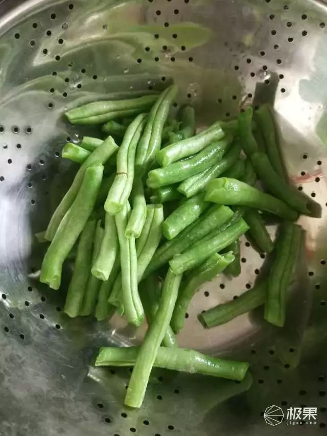 为了增加蔬菜的摄入,我准备了一些长豆角,记得提前用盐水汆15秒。