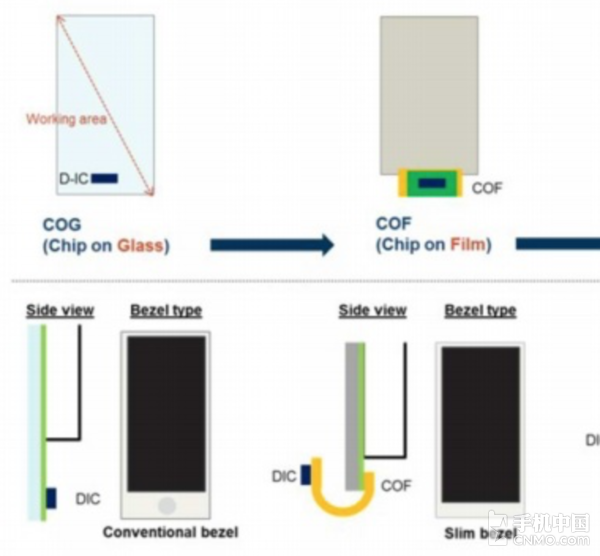 屏幕下方的柔性IC可以弯曲到屏幕后面