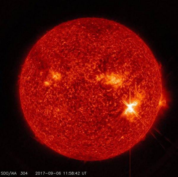 美国国家航空和宇宙航行局(NASA)证实,太阳在6日晚连续爆发两次被称为“闪焰”(Solar flare)——太阳耀斑的大爆炸,其中一次高达X9.3级,打破12年来的观测纪录,并伴随着太阳质子事件和日冕物质抛射(CME)产生。专家表示,这两起爆炸所产生的电磁波(日冕物质抛射),预计在8日晚上或9日影响地球,严重时可能导致无线电传输,包括卫星定位系统(GPS)的暂时性故障,和大规模的停电事件。