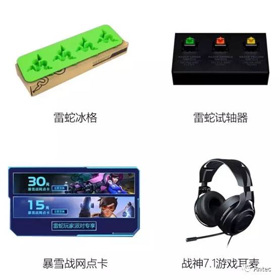 玩家派对现场除了有灵刃、雷蛇机械轴、当机全新游戏键盘及战锤狂鲨BT等新品体验机会之外,还会有安钛克、暴雪娱乐等提供的丰富奖品等你来拿!根据消息,每位到场玩家都能获得30元暴雪点券,部分奖品还会是限量版产品,颇具收藏价值。