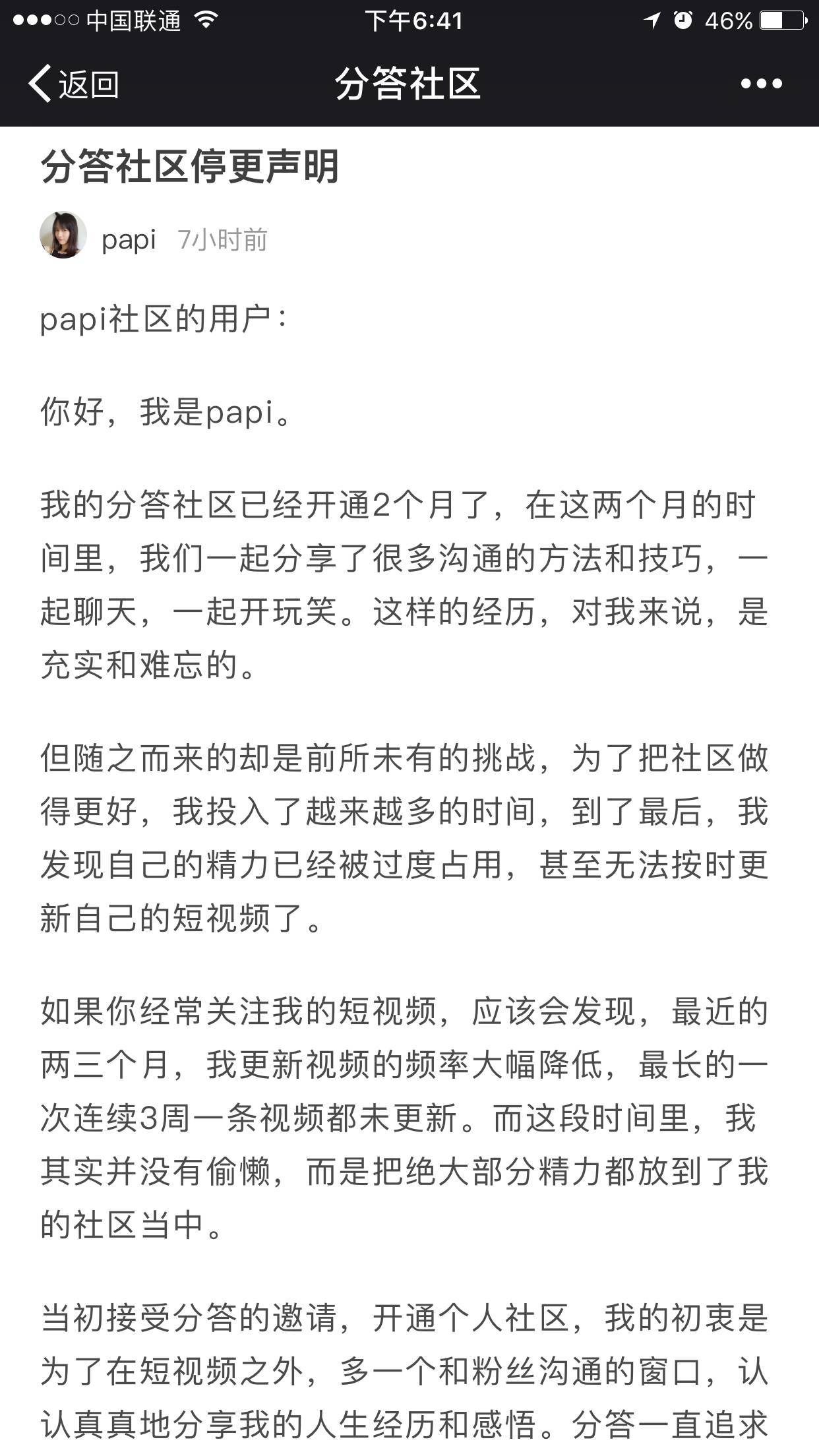 所以,有了今天我们所看到Papi酱停更分答社区的结果。