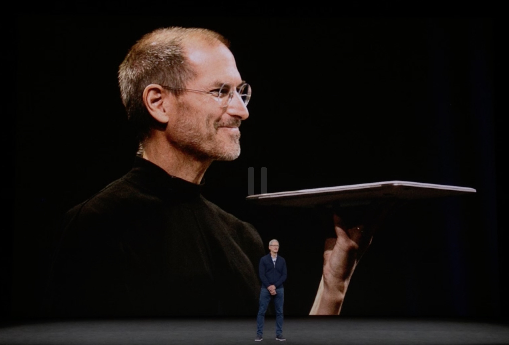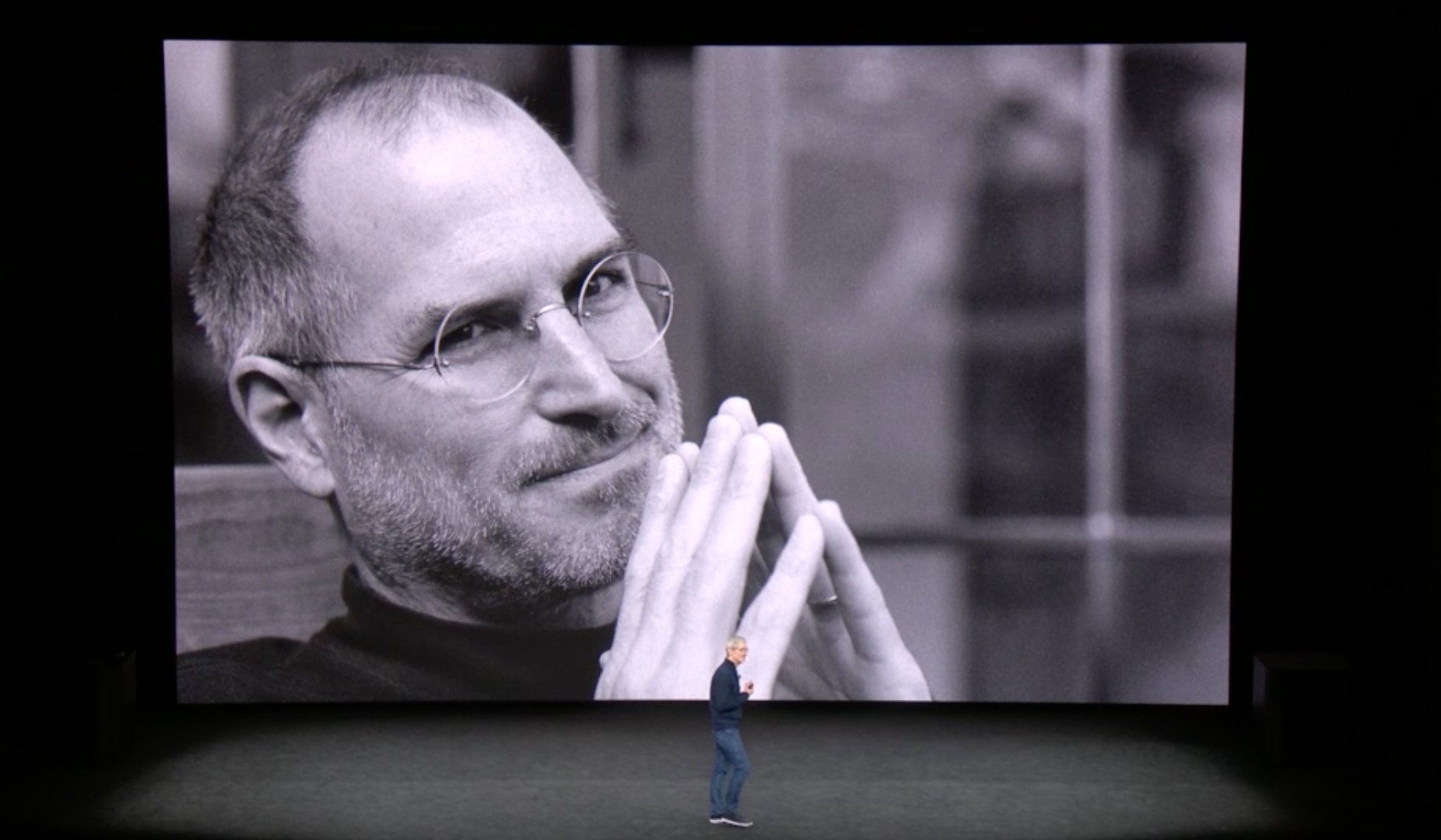 发布会的开场库克含泪缅怀乔布斯,此次举行发布会的地方,正是以苹果的精神图腾——乔布斯来命名。而开场前预热视频是乔布斯的声音,瞬间像是回到了7年前。