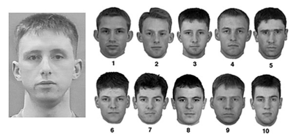 这是 Bruce 与同事们在 1999 年的论文中的一个例子,这一堆面孔披头盖脸的忽闪上来,真心不太好判断左边那张面孔属于右边十个人里面的谁。原因之一就是不同环境。光源,甚至拍摄角度都会影响面孔的形态。别忘记了:头像照是你的三维面孔向二维图像的投影。你面孔上的宽高信息会随着光线和面孔朝向变化。
