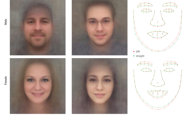 两位作者收集到大量社交网络上的图片,以及图片所有者的性取向,训练出一个识别性取向的‘机器’。尽管动用了 DNN 神经网络等计算机技术,但是整套系统的基础却是基于认知心理学与生物学的。作者也承认,他们训练出来的分类器的原理是区分一下两个与性取向相关的特征点,我们可以总结为: