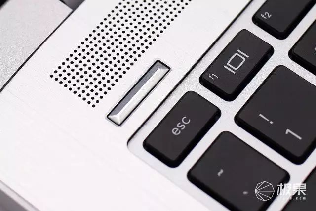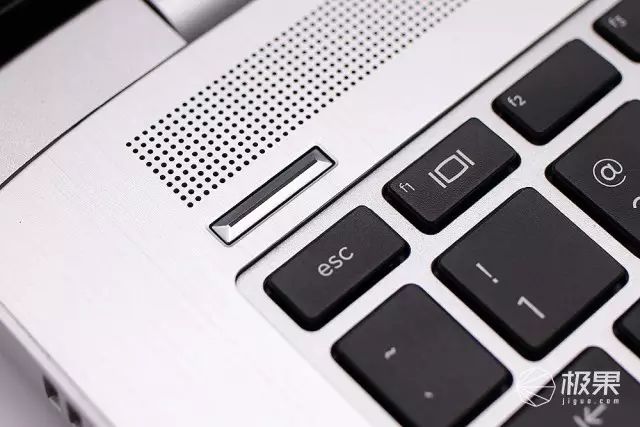 右下角的指纹识别,是滑动式的,造型与左上角的电源键遥相呼应。对于一款商用本来说指纹识别还是必备的,同时对于笔记本频繁的解锁,还是指纹识别省事一些。