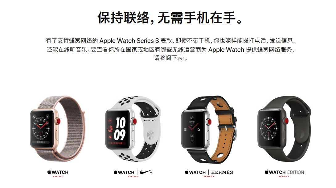 对于Apple Watch Series 3的支持, 虽然苹果公司官网显示中国电信和中国移动都“将于今年稍候推出”,但笔者认为中国电信的难度要明显高于中国移动,这也跟中国电信VoLTE业务商用进度有关。