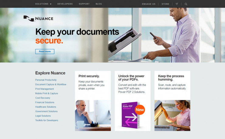 AI创业好像一片热闹,但是若深入思考,这却是一个非常可怕的现象,因为AI创业公司但凡有点成绩,基本都已被巨头收入囊中。被收购或者倒闭,似乎成了AI创业公司无法逃脱的宿命。那么坚持独立发展的道路又能怎样?这可以从语音识别领域的国内外两大巨头的处境来分析。首先我们来看国内的语音识别龙头科大讯飞,最近也与长江商学院薛教授互相指责,稳定的盈利可能是科大讯飞当前最大的尴尬。其次再看国外语音识别的老牌企业Nuance,下图是这家公司的全球网页,几乎令人怀疑这家公司还在做语音识别吗?转型的压力一度让Nuance陷入困境,其股价始终低位徘徊。