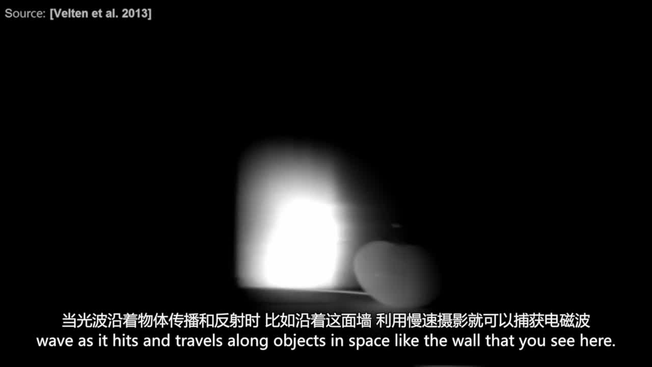 这就是我们所说的飞秒成像!那么飞秒成像有什么好处呢?比如,它可以捕获光作为电磁波,当光波沿着物体传播和反射时,比如沿着这面墙,利用这项技术就可以捕获电磁波。