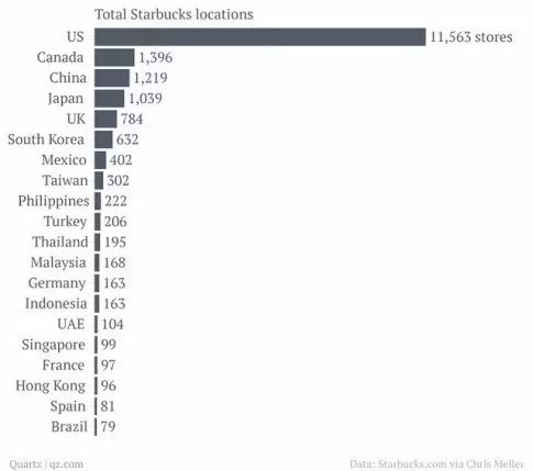 加拿大是继美国之后星巴克最多的国家,中国紧跟其后