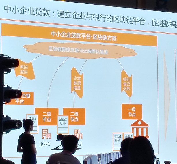 第三个是中小企业贷款场景。银行的最大痛点就是,如何验证企业数据真实性。该平台客户端包括企业端、平台和银行端。当前有将近4000个中小企业安装了客户端。平安采集加密ERP、财务、税务数据等,当企业发起申请贷款时,会验证对比每日的数据,“我们相信每日作假的成本太高。”