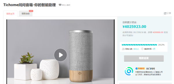原标题:众筹已过400万!问问音箱Tichome将开售