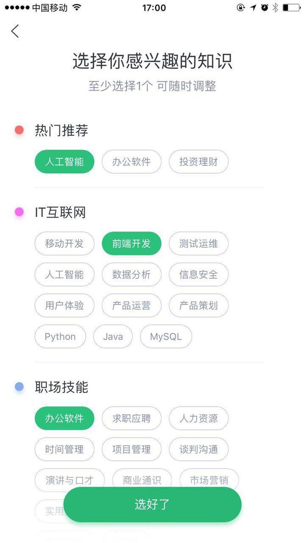 据了解,这次新版本最大变化在于更加突出个性化学习推荐功能,为用户提供更精准的学习推荐。打开网易云课堂APP新版本,首先看到的是不同类目的知识体系,用户可根据自己的兴趣选择知识体系。网易云课堂APP中引入了34个内容体系,涵盖互联网+、职场、生活等多个领域,内容形式多样,包括文章、视频、音频、书籍、课程,可轻可重,可看可听。用户选择学习兴趣后,每天都可以在首页获得相应的学习推荐,不同的课程内容体系,也能满足不同用户、不同层次的学习需求。