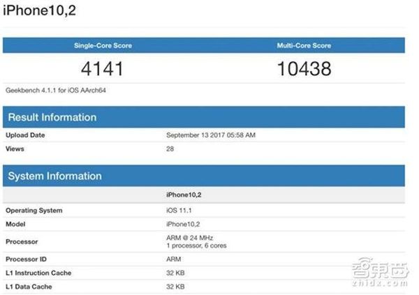 此外,我们也可以从A11在Geekbench的跑分上一窥究竟:在Geekbench中有A11的几个跑分,其中单核性能最高的是4274,多核性能最高的是10438,而取这些跑分平均值后,单核性能是4169,多核性能是9836。