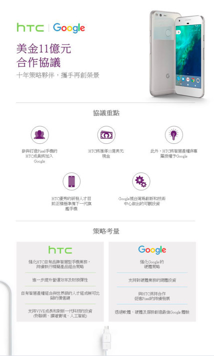 9 月 21 日,Google 收购 HTC 手机业务的传言终于尘埃落定。据了解,双方共同宣布签署协议,Google 延揽原参与打造 Google Pixel 手机的 HTC 成员加入 Google。就此次交易,HTC 将收到 11 亿美元的交易金额。此外,HTC 也将其专利非专属权授予 Google 使用。