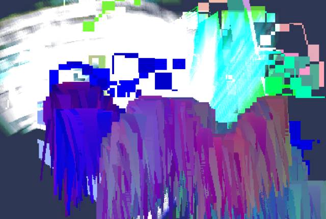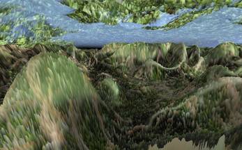 《Vertex Meadow》截图,这是一个将图片强行二转三的软件,经常会出现如图的猎奇景象
