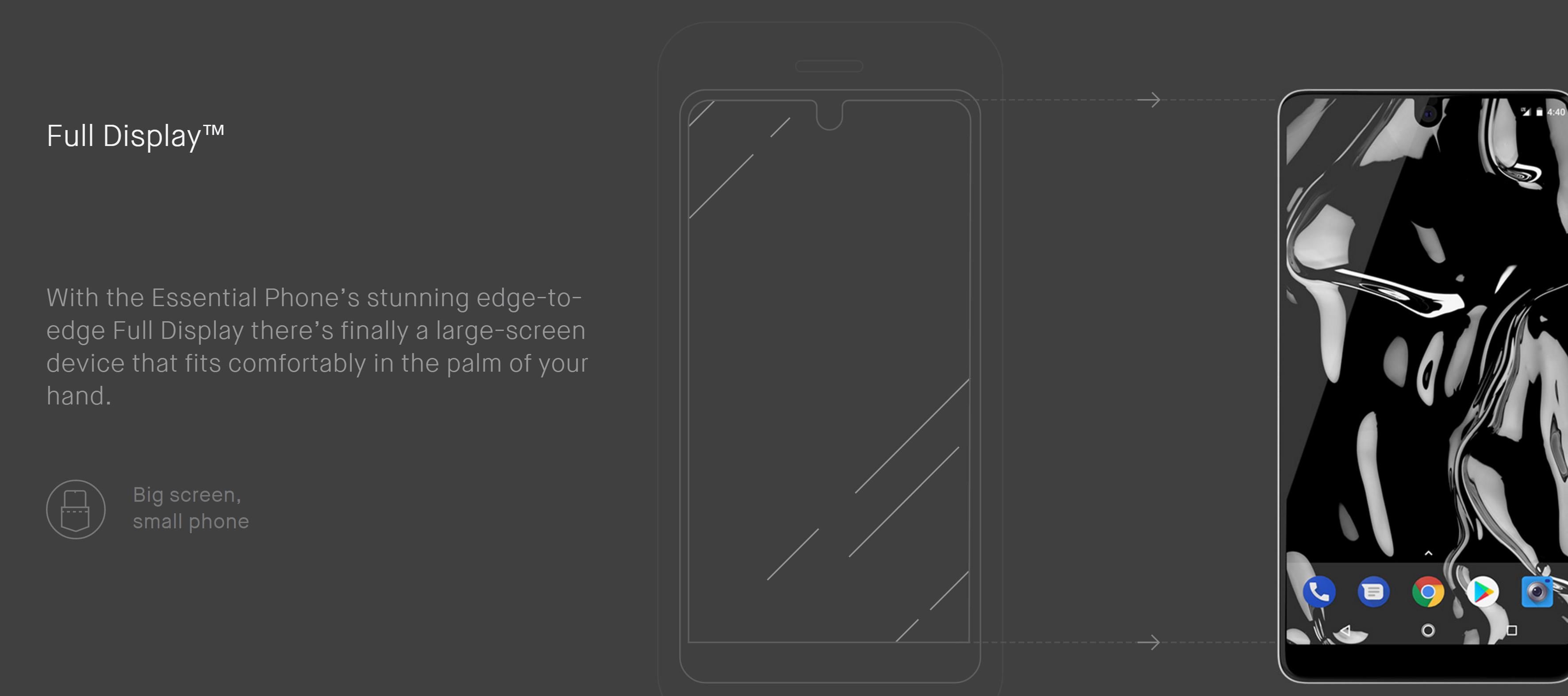 安卓之父 Andy Rubin 所推出的 Essential Phone ,采用的屏幕称呼是 “Full Display” ,这和苹果的 “all screen” 倒还真是异曲同工。