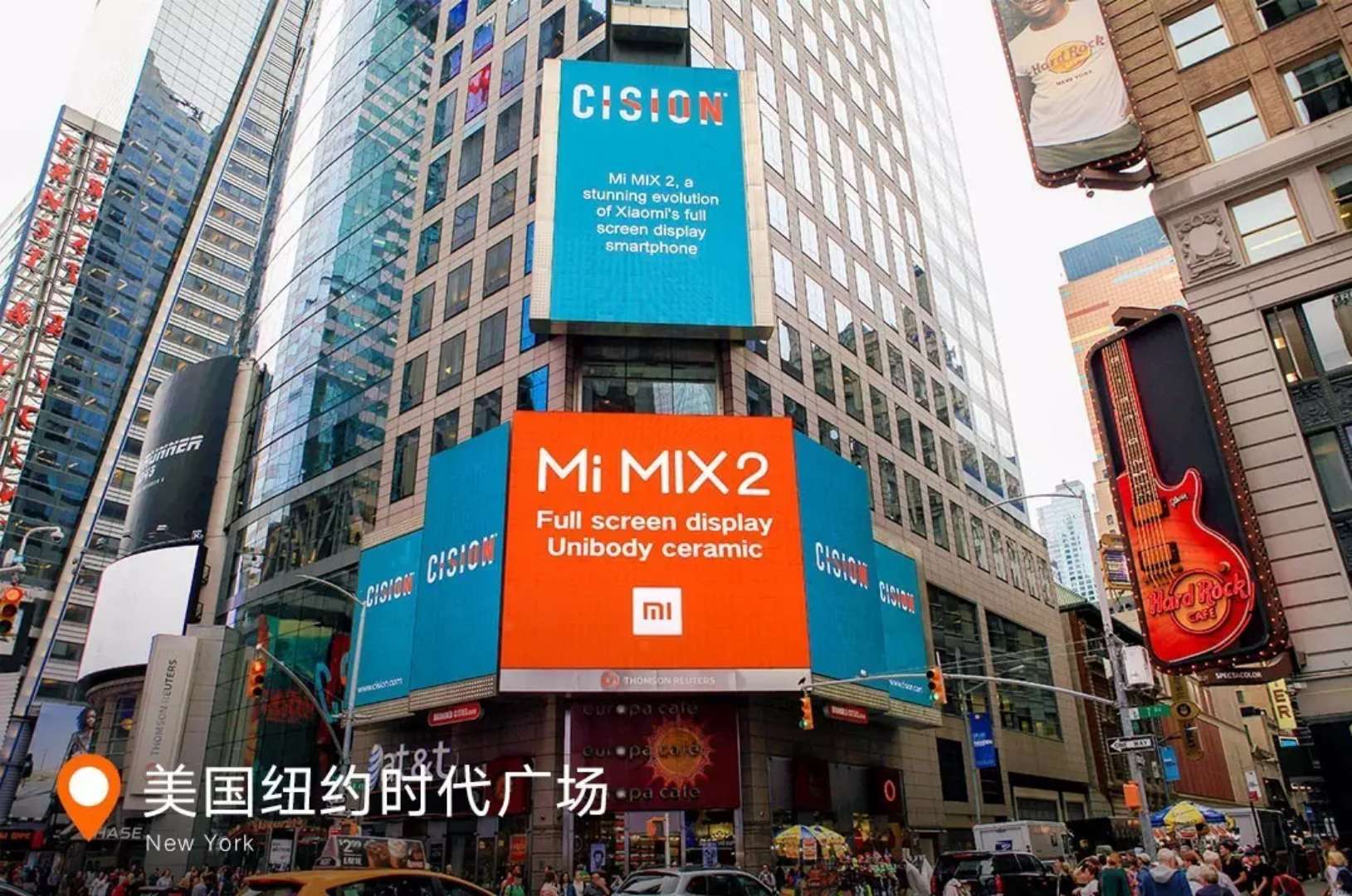 本周小米官方发文称,小米 MIX 2 登上了美国纽约时代广场。在这张照片中,我们可以看到,小米对于 MIX 2 “全面屏”一词的英文翻译是 “Full screen display” 。这个名称虽然很直白但不够简洁,而且较容易被误解成(画面)“全屏显示”的意思。