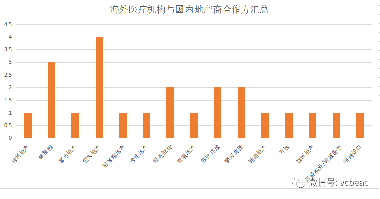 其中与恒大地产合作的海外医疗机构最多达4个,其次是与碧桂园合作的海外医疗机构达3个。