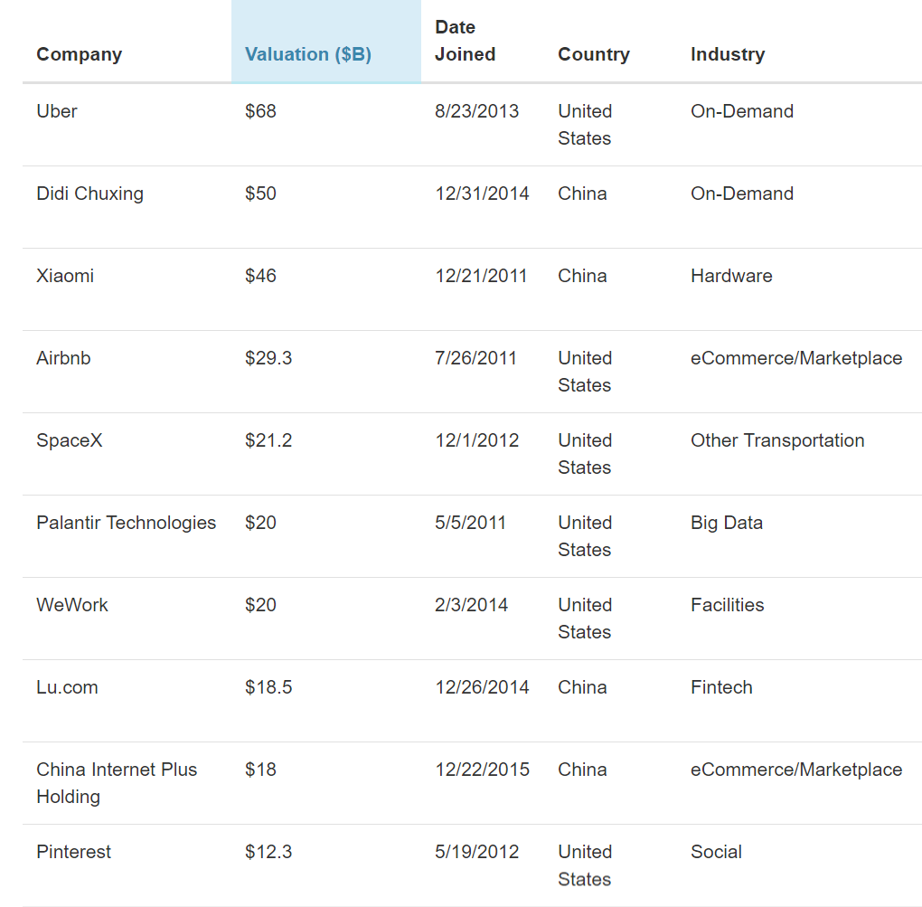 @第一财经【全球“独角兽”榜单:电商“独角兽”最多 4家中国企业跻身前十】美国著名创投研究机构CB Insights近日发布“全球独角兽公司榜单”(“独角兽”一词源于风投界,指的是估值超过10亿美元的创业公司),共计214家企业上榜。前十名中,有6家为美国企业,其余4家皆为中国企业:滴滴出行、小米、陆金所和新美大。