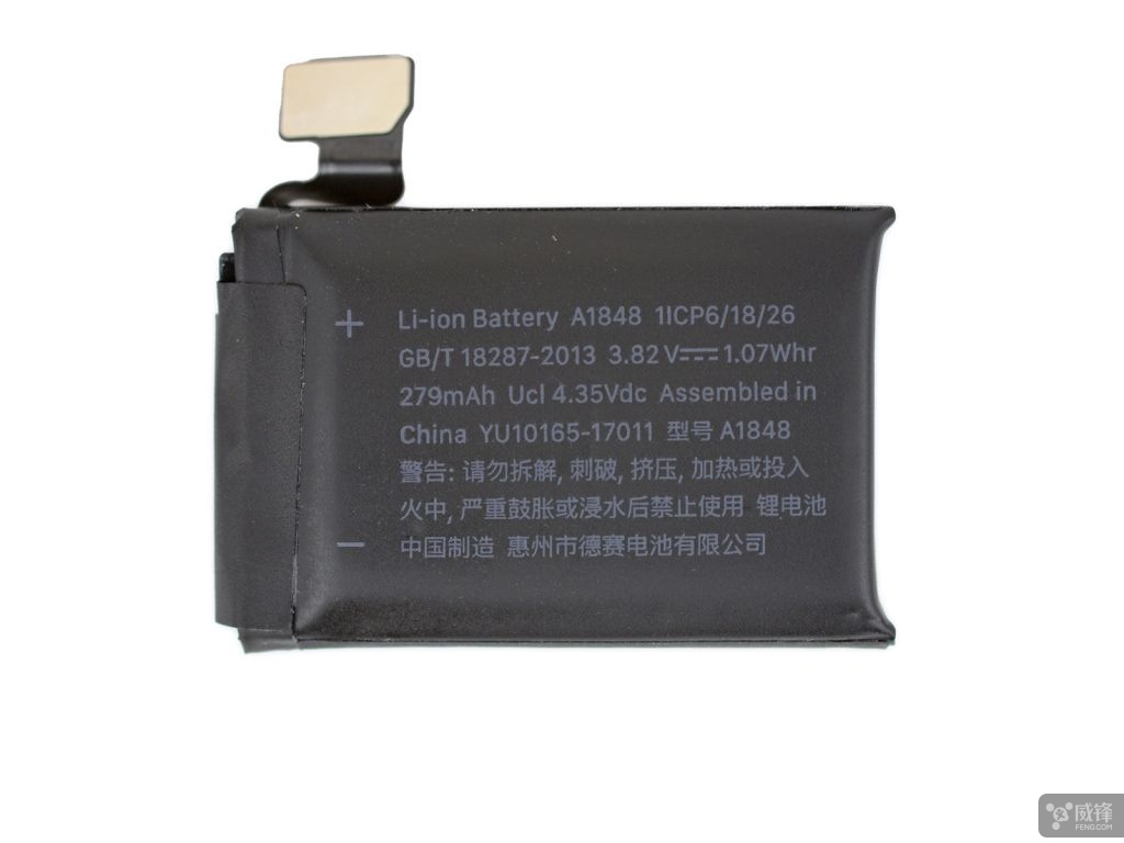Series 3 的电池型号是 A1848,封装 1.07Wh 电量(3.82V 279mAh)