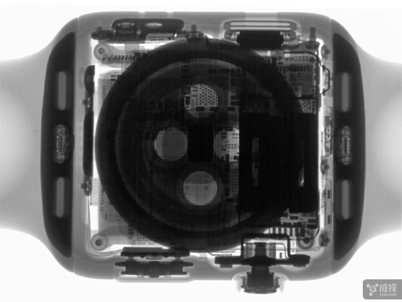 从 X 光图对比来看,整体布局与初代 Watch 并没有太大变动但在扬声器的下方似乎有些新增的焊件(X 光图右上角)