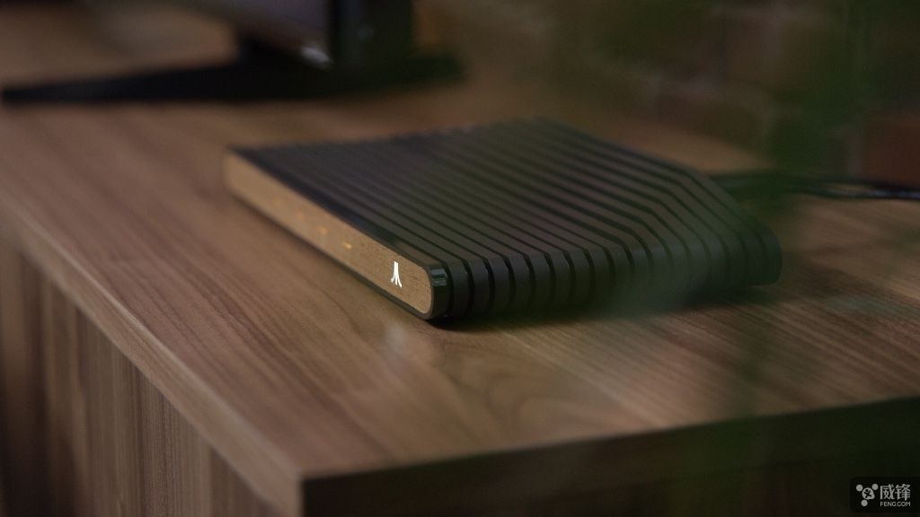 Ataribox 在设计上很明显,致敬的是公司最经典的游戏机 Atari 2600 的造型,拥有条纹纹路的扁平机身,不同的是设计上更加现代化,弧线感更强,给人的印象非常深刻。官方表示,Ataribox 将拥有两种款式,主打黑红配色的普通款,以及同样是致敬 Atari 2600 的木质外壳款。