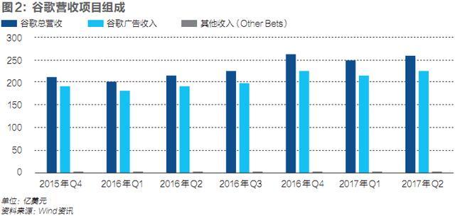 宣布重组之后,谷歌市值直接飙升了250亿美元,Alphabet的整体财务情况也良性发展,尤其是营收方面。2017年二季度营收达到260亿美元,较去年同期增长21%,这个数字优于华尔街乐观估计的256亿美元。