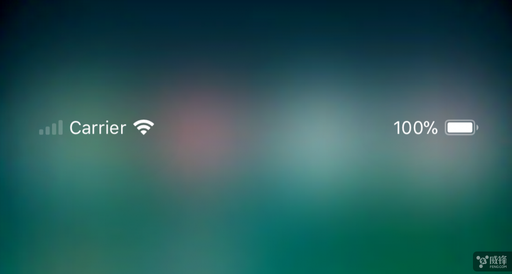 在模拟器上,控制中心的界面实际上并不工作,但我们可以看到状态栏已消失,新的状态项出现在凹槽区域的下面,其中包括运营商的名称和电池剩余电量的百分比。