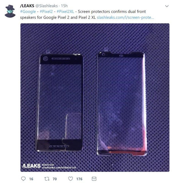 据悉,下月4日,谷歌将正式发布Pixel2和Pixel2XL两款手机产品。近日,又有关于新机的消息被曝光了,这其中就有著名的爆料达人@Slashleaks在推特上的曝出的有关Pixel2和Pixel2XL的屏幕保护膜的谍照。