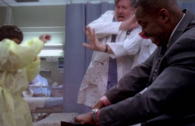 这些电视剧用血液来制造强烈的戏剧效果。它们溅在手术面罩和手术衣上,还从切口里喷射出来,场面十分惊人。在《实习医生格蕾》(Grey’s Anatomy)中,一名病人颈动脉上方的一处伤口先是危险地跳了几跳,接着就突然爆开,喷出一根血柱洒在一位医生的白大衣和罩衣上。