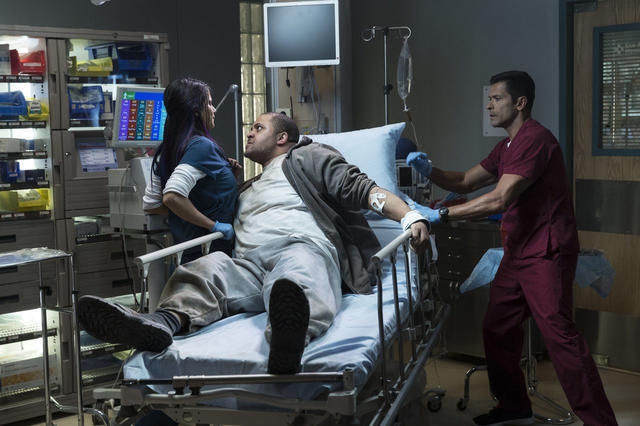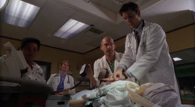 上一季的《夜班医生》(The Night Shift)中就出现了这个熟悉的场景:克莱门斯医生俯在一个女病人上方,病人张开的嘴里插着管子,对刺激已经没有了反应。克莱门斯伸直双臂,两手交叉放在这名年轻女子的胸口,急切而有节奏地按压她的胸膛。他每按五次就停一阵,并让另一个手持除颤器电极板的医生对病人实施一次电击。