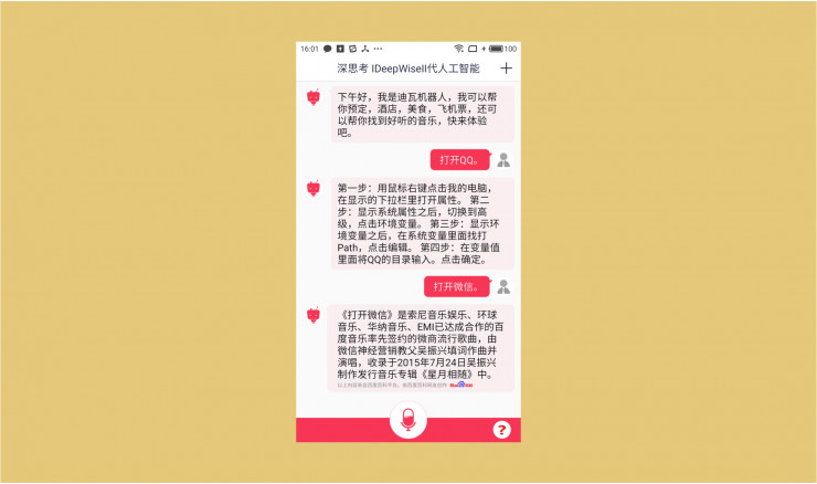 可以看出以上四家在界面设计上,出门问问使用酷黑色,整体看起来比较炫酷。另外几家(度秘、灵犀、深思考)则使用白色或者浅灰色作为背景。