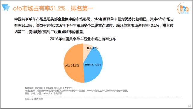 小蓝单车处于行业第三的位置,虽然和头部的ofo、摩拜仍然有很大的差距,但是,在很多人看来,小蓝单车在用户体验上绝不输于ofo和摩拜,尤其是小蓝的变速车,获得了很多骑行爱好者的青睐。