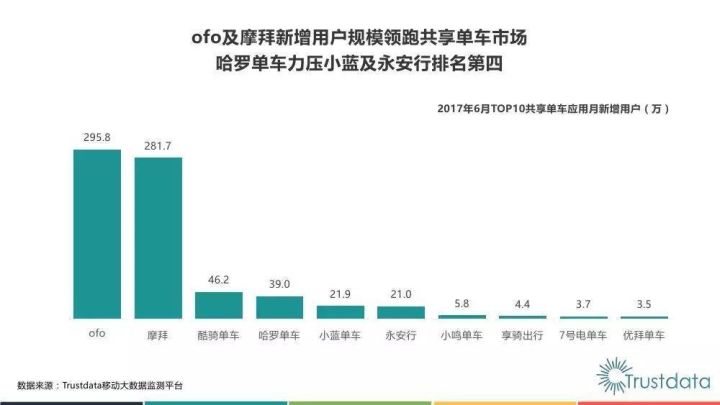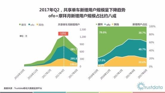 (Trustdata数据显示:共享单车新增用户从2017年4月开始放缓)