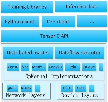 上图为TensorFlow系统架构,详情可参见雷锋网【从系统和代码实现角度解析TensorFlow的内部实现原理】一文。