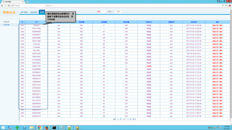 病毒会以任务的形式,向每一位CPA推广者提供要添加的QQ号码。添加的任务数量在300~500不等。