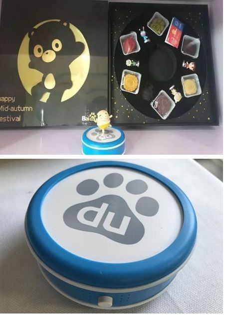 百度黑色的礼盒外表看起来酷酷的,打开后里面除了月饼还有卡通手办,甚至连月饼的形状也做成了小度熊和熊掌的样子。有意思的是,百度月饼还有一个带有百度LOGO的音乐盒,可以播放音乐,充满科技感。百度已将人工智能当做公司战略,连月饼都这么科技感…...
