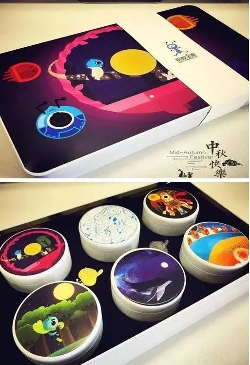 第一眼看去,以为蚂蚁金服走的是星际迷航酷炫风。月饼盒上的这些画,是蚂蚁金服爱佑未来基金会旗下,音画梦想项目资助的小朋友们画的。蚂蚁金服在公益方面的努力有目共睹,这些画,算是孩子们的一种爱的回馈吧。