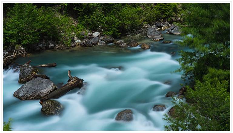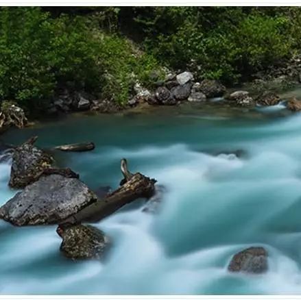 注意静止的岩石是如何保持原状,但是湍急的河水被平均化为连续的图片,从而模拟出长时曝光效果。
