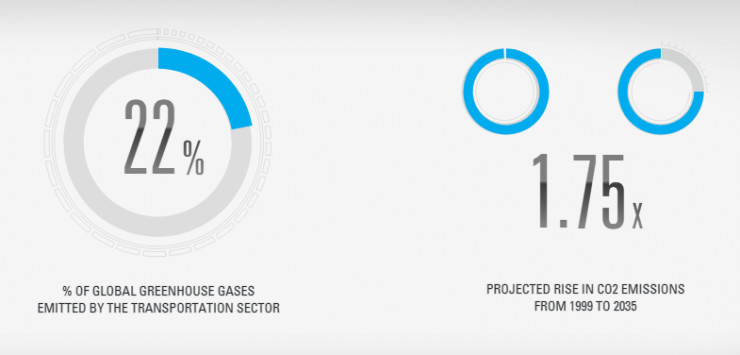 消费者和监管机构对全球气候变化的担忧,让汽车制造商有了亟需降低二氧化碳排放的压力。根据日本经济贸易部的数据,全球由交通产生的温室气体占所有温室气体排放的22%,预测2035年的二氧化碳排放量将是1999年的1.75倍。