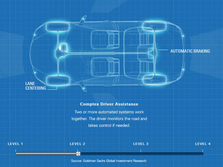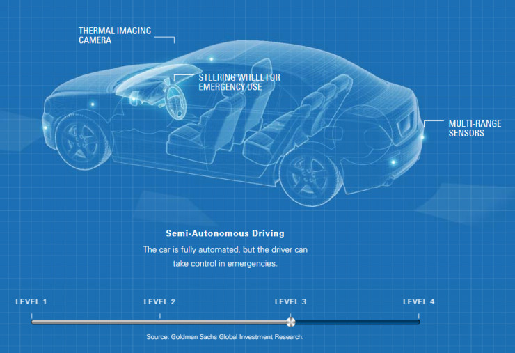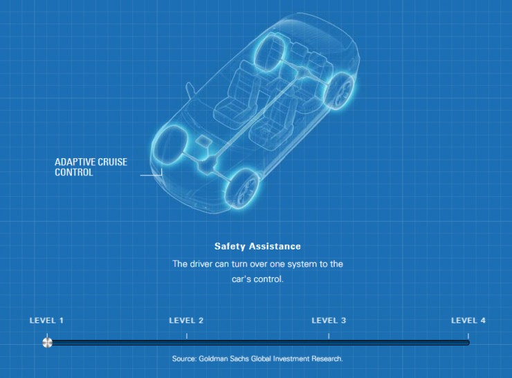 根据高盛的研究,自动驾驶将会分四个阶段实现。
