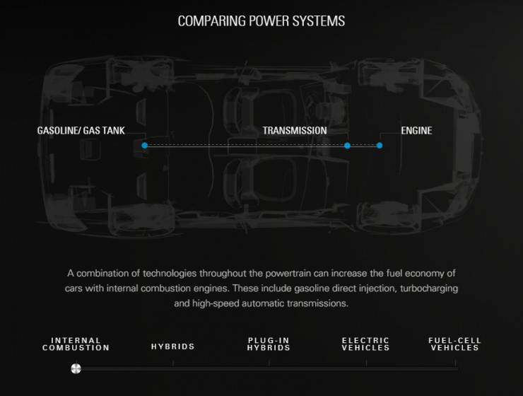 内燃机:通过组合一些技术,可以降低内燃机动力系统对汽油的消耗,例如通过直接喷射、涡轮增压、高速自动变速箱等。