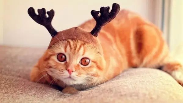 举个例子,给下面这张图片加字幕(Image Caption):一只黄色的小猫带着一个鹿角帽子趴在沙发上。可以发现在翻译的过程中我们的注意力由小猫到鹿角帽子再到沙发(小猫→鹿角帽子→沙发)。其实在很多和时序有关的事情上,人类的注意力都不是一成不变的,随着事情(时间)发展,我们的注意力不断改变。