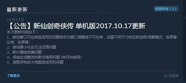 对此, 《仙剑奇侠传》官方今日发布公告,宣布对《新仙剑奇侠传》进行了更新,并且向玩家致歉。