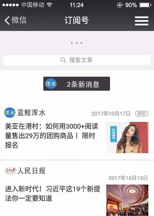 3. 打开订阅号的界面顶部会提示内容更新,与朋友圈的提示机制类似;