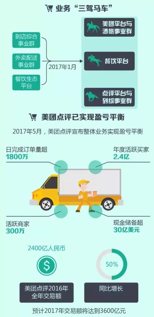 更详细来看,在美团点评合并之后,原本就注重交易属性的美团使美团点评整体的交易属性变得更加明显;信息层面,二者的内容交织在一起也形成了更大的信息平台。