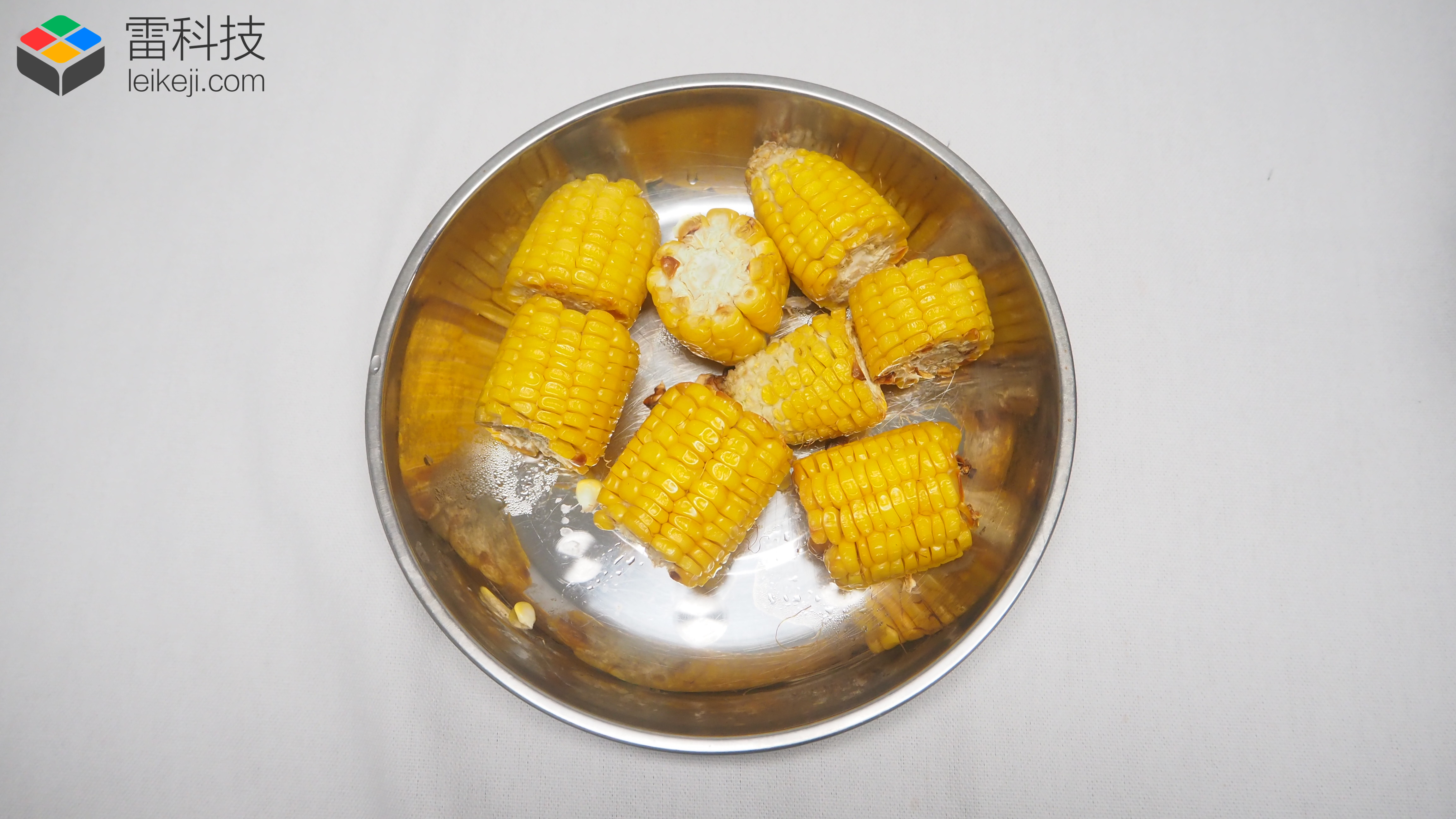 在十几分钟的等待后,玉米出炉。从外观和口感来说,玉米用九阳空气炸锅烹制和烧烤方式类似,不太像油锅。玉米表面略有焦灼的痕迹,同时水分被吹干,甘甜的味道更明显,喜欢烤玉米的应该会青睐这种做法。